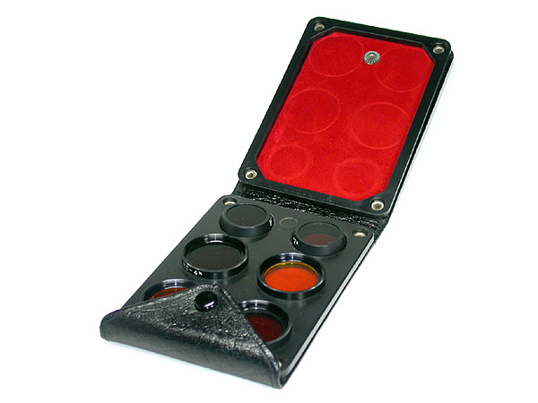 Seltenes Zubehörteil: Ein ledernes Etui mit Filtervorsätzen für russische Filmkameras, zum Beispiel für die Quarz Zoom.