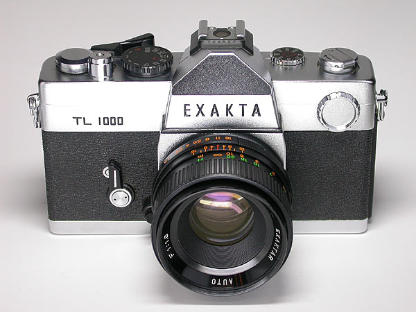 Interessante Spiegelreflexkamera für den Kleinbildfilm. Anbieter: "Ihagee West" (verschiedene Firmierungen zwischen 1960 und 1976), produziert 1976 in Japan bei Petri. Die TL 1000 ist denn auch der Petri FTX sehr ähnlich. Schlitzverschluss B bis 1/1000 Sekunde, CdS-Nachführbelichtungsmesser. Den Body gibt es auch in schwarz. |