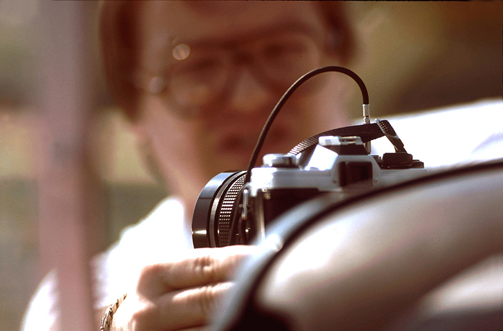 des Aufnahmegeräts, einer Canon AE-1 mit Winder und dem